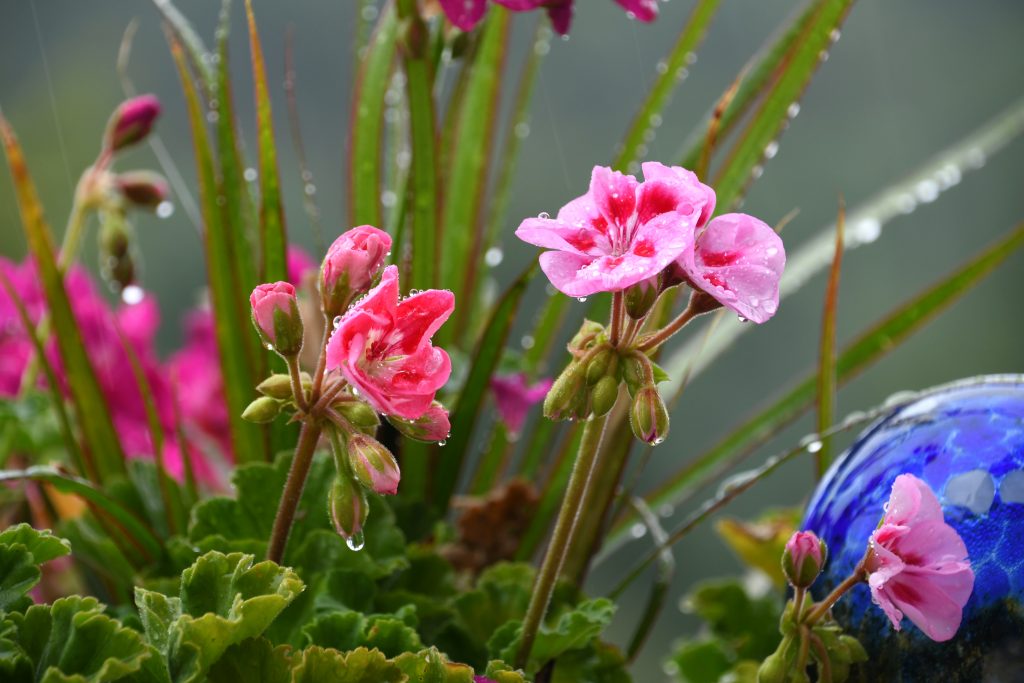 Durante el verano, los geranios requieren un riego moderado pero constante para mantener su floración activa. Se recomienda regar 2 a 3 veces por semana, permitiendo que la tierra seque ligeramente entre riegos.